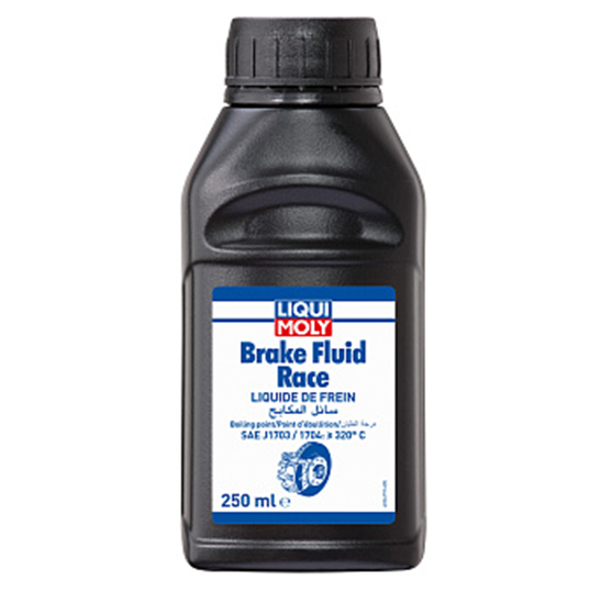 Brake Fluid Race — cинтетическая тормозная жидкость. Содержит ингибиторы, предотвращающие коррозию металлических деталей тормозных механизмов и уменьшающие окисление при высоких температурах. При старении продукта не образуются кислотные продукты. Liqui Moly Brake Fluid Race специально разработана, чтобы увеличить срок службы компонентов гидравлических тормозов и систем сцепления спортивных автомобилей и мотоциклов, Liqui Moly Brake Fluid Race имеет высокую влажную и сухую точку кипения, таким образом, обеспечивая безопасное торможение даже после длительного периода эксплуатации. Особый компонент помогает предотвращать формирование паровых пузырей. Liqui Moly Brake Fluid Race идеальна для использования в тормозных системах с ABS. Соответствует стандарту DOT4. Смешивается со всеми стандартными тормозными жидкостями на синтетической основе.